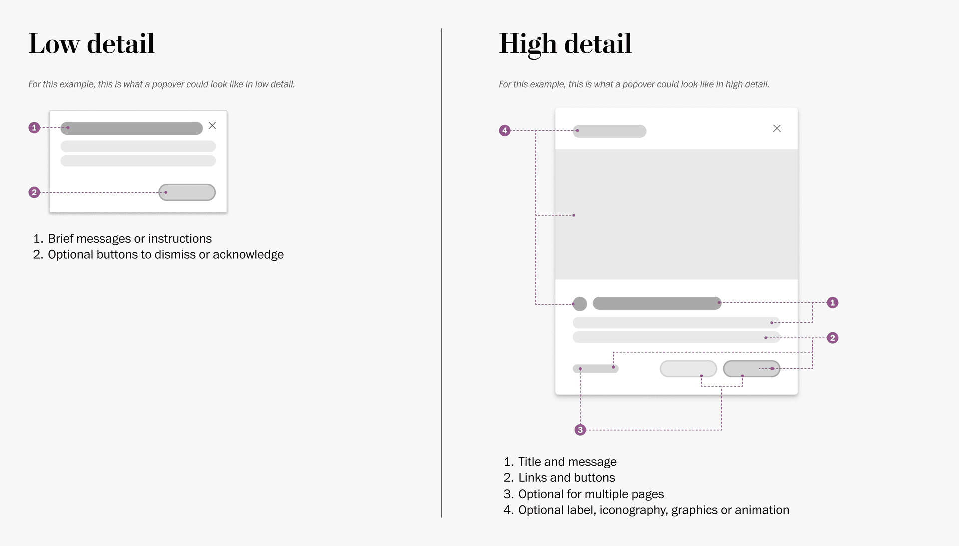 - Low Detail: Adequate when the information is helpful but not critical to the user's success or safety.